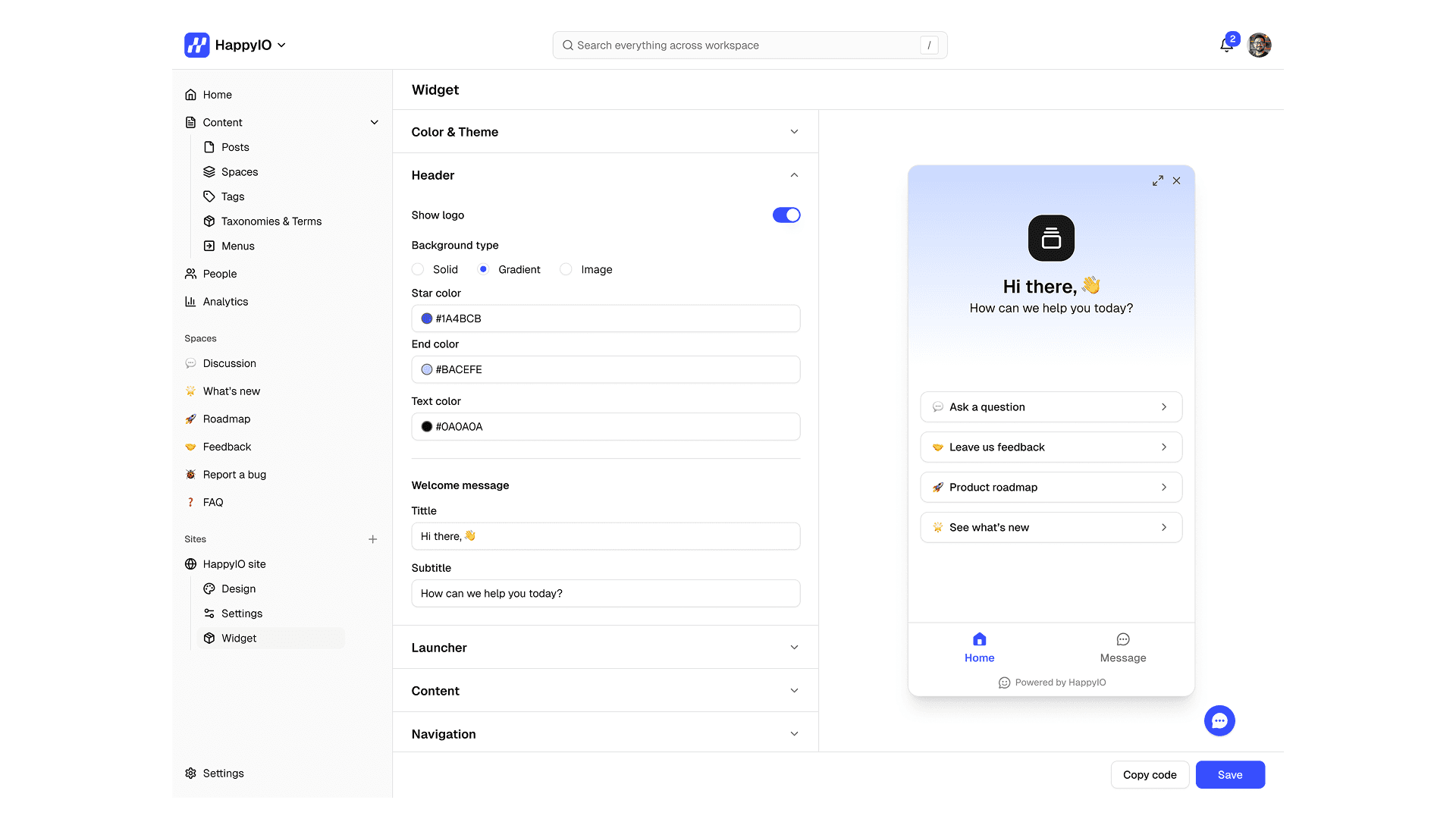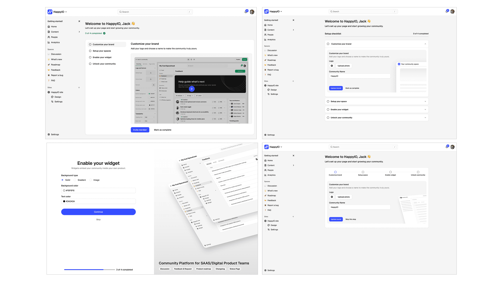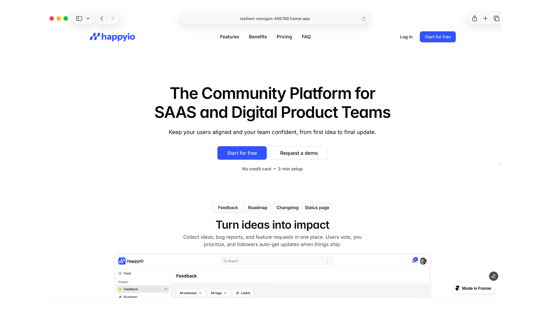 HappyIO was a "plug and play" engagement platform unifying feedback, roadmap, changelog, status page, and forum replacing 5-7 fragmented tools with one solution. Designed for indie hackers and mid stage SaaS teams who need fast feedback loops without complex setup.